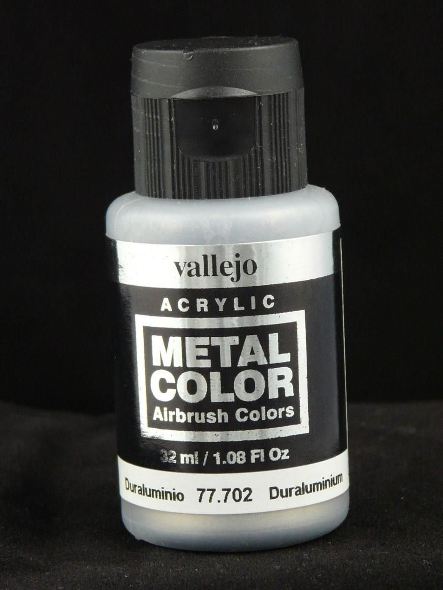 Vallejo 77702 Metal Color 32 ml Duraluminium - 1 szt. - Farba akrylowa Vallejo Metal Colors Buteleczka 32 ml Metal Color to nowa paleta metalizerów wykonanych na bazie wody. Są to farby polecane do aerografów ale mogą być też z powodzeniem stosowane przy tradycyjnym malowaniu pędzlami. Przy produkcji Metal Color zastosowano najnowszą generację aluminiowych pigmentów, które doskonale przylegają do plastiku. Pozwala to na malowanie metalizerami bezpośrednio na modelu bez konieczności stosowania podkładów. Dla uzyskania wysokiej jakości i zwiększenia intensywności aluminiowej powierzchni na kadłubach samolotów można użyć czarnego podkładu (Vallejo Gloss Black Primer 77660). Symbol produktu: VALL-77702 Producent: Vallejo