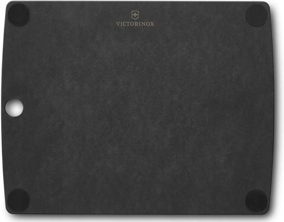 VICTORINOX - All-in-One - Deska do krojenia - S - Czarna Spraw, aby zadania kuchenne dawały jeszcze większą przyjemność dzięki tej stylowej, uniwersalnej desce do krojenia All-in-One. Mimo swojej smukłości ta wykonana z kompozytu papierowego, elegancka deska jest niezwykle wytrzymała. Dzięki nietępiącej noży powierzchni odpornej na działanie wysokich temperatur do 175°C doskonale sprawdzi się jako niezbędne akcesorium zarówno do siekania podczas przygotowywania posiłków, jak i do ich podawania. Praktyczny ociekacz na sok pomoże zadbać o czystość podczas pracy. Nadaj swoim posiłkom zupełnie inny wymiar. Doskonała do krojenia wszystkiego, począwszy od kruchego ciasta, a skończywszy na soczystym mięsie Z ociekaczem na sok i zdejmowanymi kauczukowymi nóżkami na każdym rogu Wykonana z kompozytu papierowego, który nadaje się do mycia w zmywarce i jest odporny na działanie wysokich temperatur do 175°C Wymiary deski: 292 x 228 x 6 mm.