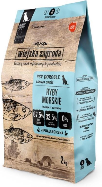 Wiejska Zagroda Ryby Morskie 2kg KARMA PEŁNOPORCJOWA SUCHA DLA PSÓW DOROSŁYCH KARMA DOSTĘPNA W DWÓCH ROZMIARACH CHRUPEK: S i M Wiejska Zagroda to polska, przygotowana z najwyższą starannością pełnoporcjowa karma dla psa. Regionalne produkty od lokalnych dostawców to gwarancja świeżości i jakości …