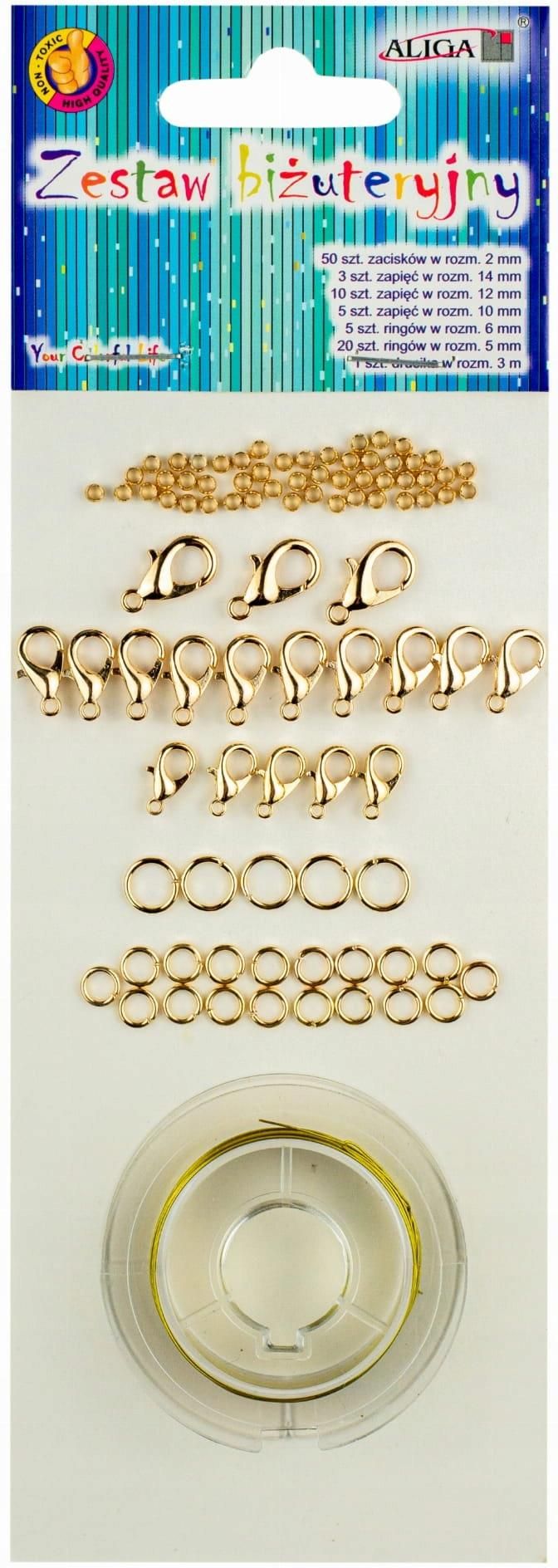 Poczuj magię tworzenia własnej biżuterii z naszym zestawem! To nie tylko hobby, ale i sposób na wyrażenie siebie. Zestaw do eksperymentowania i projektowania. Wysoka jakość srebrnych materiałów zapewniających trwałość. Idealnie sprawdzi się również do naprawy zepsutych bransoletek, naszyjników. Zestaw zawiera 50 szt. zacisków w rozmiarze 2 mm 3 szt. zapięć w rozmiarze 14 mm 10 szt. zapięć w rozmiarze 12 mm 5 szt. zapięć w rozmiarze 10 mm 5 szt. ringów w rozmiarze 6 mm 20 szt. ringów w rozmiarze 5 mm 1 szt. przezroczystej żyłki elastyczne o dł. 3 m