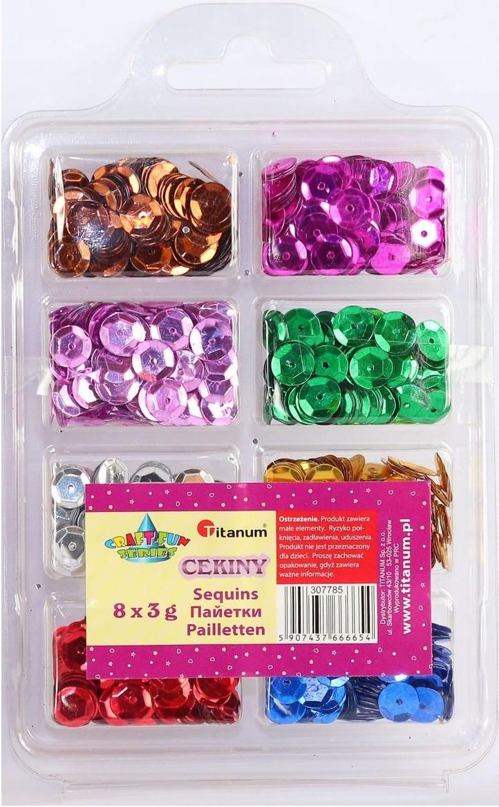 Zestaw cekinów metalicznych 8mm w 8 kolorach od Titanum Kreatywne prace plastyczne, rękodzieło i ozdabianie odzieży stają się jeszcze bardziej atrakcyjne i kolorowe, dzięki zestawowi metalicznych cekinów o średnicy 8mm od marki Titanum. W zestawie znajduje się 8 różnych kolorów, każdy po 3g, co pozwala na stworzenie unikalnych wzorów, projektów i dekoracji na dowolnej powierzchni.Cekiny te są kształtowane w klasycznej, okrągłej formie, co sprawia, że świetnie nadają się do wszelkiego rodzaju prac dekoracyjnych, zarówno jako pojedynczy element, jak i składnik bardziej skomplikowanych wzorów. Ich metaliczny połysk dodaje stylu i elegancji, niezależnie od projektu, które są używane.Niezawodność i różnorodność barw sprawiają, że są idealne dla artystów, entuzjastów DIY, nauczycieli i rodziców, którzy chcą zachęcić dzieci do rozwijania swojej kreatywności w pracach plastycznych. Zestaw umożliwia tworzenie niezliczonych kombinacji kolorystycznych, a także używanie cekinów jako materiału zdobniczego w każdej sytuacji.Więcej inspiracji i kreatywnych możliwości czeka na Ciebie z metallicznym zestawem cekinów 8mm w 8 kolorach od Titanum! EAN: 5907437666654
