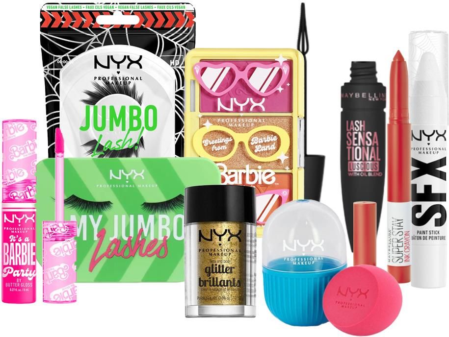 Zestaw Makeup Set W zestawie znajdują się: NYX Professional Makeup My Jubo Lashes Opakowanie na Rzęsy NYX Gąbka do Makijażu Różowa Maybelline Lash Sensational Luscious Tusz do Rzęs Black Maybelline Super Stay Ink Pomadka w Kredce 40 Laugh Louder NYX Professional Makeup SFX Farbka w Sztyfcie do Twarzy i Ciała Giving Ghost 3g NYX Professional Makeup x Barbie Butter Lip Gloss Błyszczyk do Ust 01 It's a Barbie Party NYX Professional Makeup Jumbo Rzęsy na Pasku Spiky Fringe NYX Professional Makeup x Barbie Paleta do Twarzy 01 Greetings From Barbieland NYX Professional Makeup Glitter Brillants Brokat do Twarzy i Ciała 08 Bronze Wszystkie produkty są pełnowartościowe.
