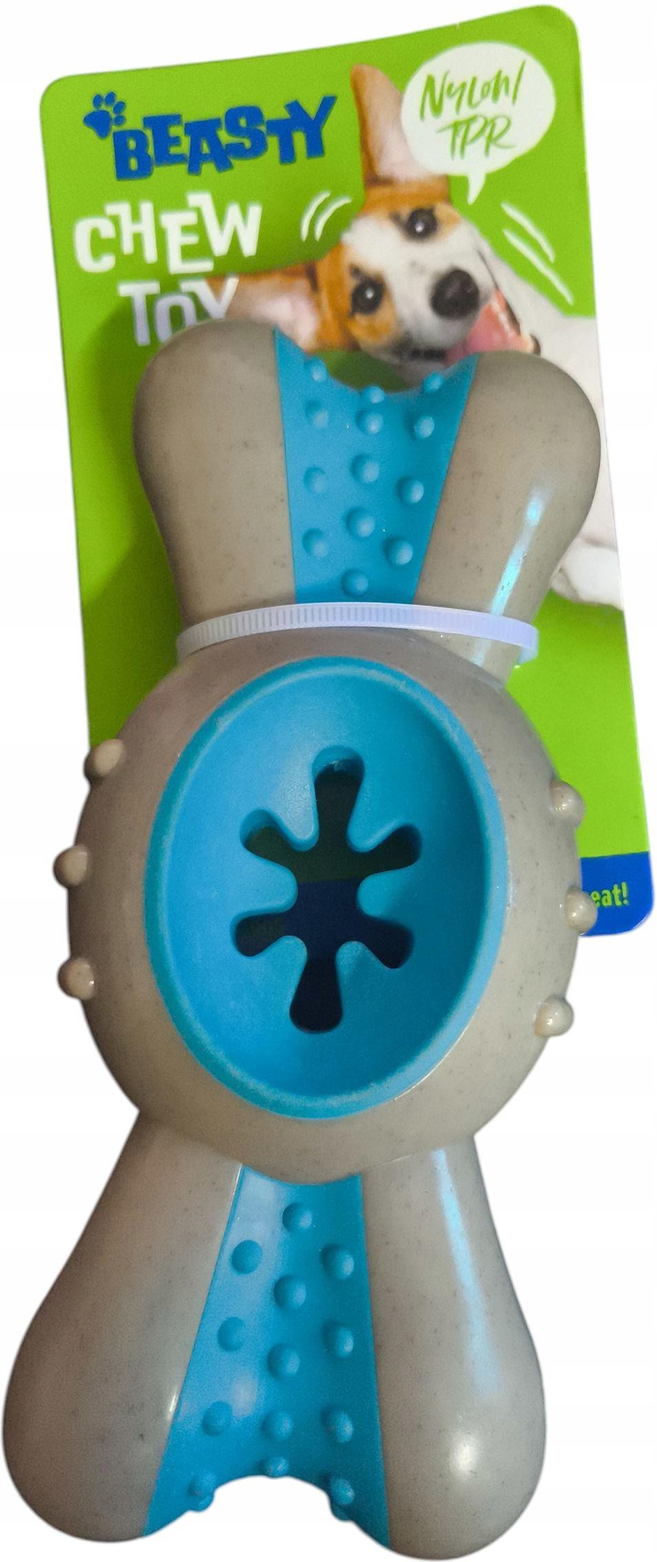 Beasty Chew – zabawka dla psa z nylonu, 18 cm – wytrzymała zabawka do żucia stworzona z myślą o psach, które uwielbiają intensywną zabawę. Produkt wykonany z wysokiej jakości nylonu oraz elementów TPR wspiera higienę jamy ustnej i zapewnia długotrwałą zabawę. Skład Nylon wysokiej jakości TPR (termoplastyczny elastomer) Analiza składuNylon jest wytrzymały i odporny na intensywne żucie, co zwiększa trwałość zabawki. Wstawka z TPR wprowadza dodatkową teksturę, zwiększając atrakcyjność zabawki i stymulując psa do aktywności. Materiały są nietoksyczne i bezpieczne dla zwierząt. Dodatki Funkcja czyszczenia zębów i masażu dziąseł Atrakcyjny kształt przyciągający uwagę psa Bezpieczne i nietoksyczne materiały Dawkowanie (stosowanie)Podawać psu do żucia pod nadzorem opiekuna. Regularnie kontrolować stan zabawki i w razie uszkodzeń wymienić na nową. Dodatkowe informacje Długość zabawki: 18 cm Produkt odpowiedni dla psów każdej wielkości, szczególnie dla psów intensywnie żujących Wspiera zdrowie jamy ustnej poprzez czyszczenie zębów i masaż dziąseł Zapewnia długotrwałą rozrywkę i stymulację psychofizyczną pupila