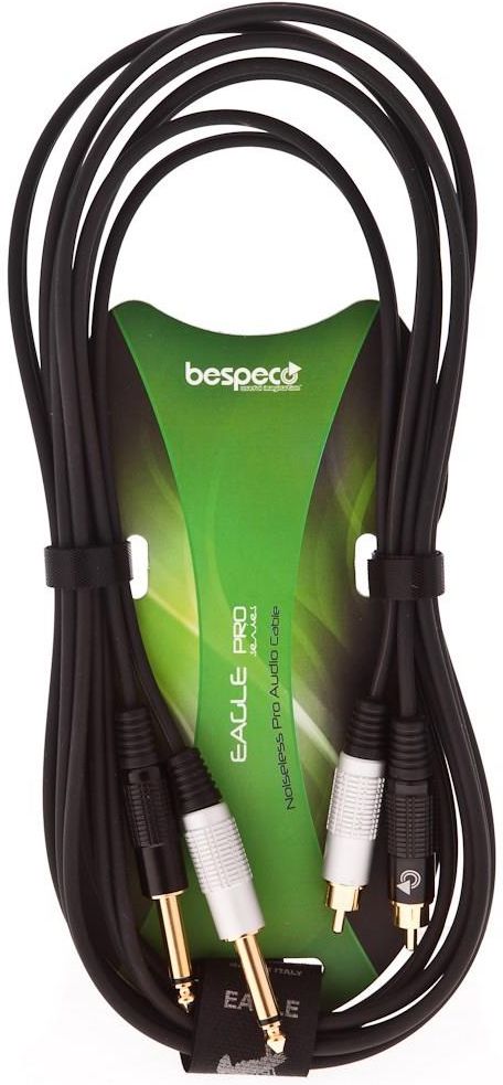 Bespeco EAY2JR500 Eagle Pro to seria przewod&oacutew o wszechstronnym zastosowaniu: instrumentalnym, mikrofonowym, głośnikowym oraz audio. Zostały one wykonane z miedzi beztlenowej o czystości 98% oraz posiadają w pełni metalowe złącza. Wszystkie złącza typu jack są pokryte złotem. Przewody mikrofonowe i instrumentalne wykorzystują spiralny ekran elektromagnetyczny o wsp&oacutełczynniku pochłaniania 92%. Dzięki temu rozwiązaniu oraz zastosowaniu najwyższej jakości materiał&oacutew są trzykrotnie wytrzymalsze od zwykłych przewod&oacutew. Przewody instrumentalne posiadają dodatkową warstwę izolacyjną PVC z dodatkiem grafitu, co sprawia że są one bezszumowe. Zewnętrzna warstwa izolacyjna przewodu, wykonana z wulkanizowanych razem PVC oraz silikonu, jest bardzo elastyczna i jednocześnie odporna na uszkodzenia mechaniczne. Wszystkie przewody posiadają nadrukowane strzałki aby podczas podłączania zachować właściwy kierunek transmisji sygnału. Dostępne są przewody mono i stereofoniczne. typ: przew&oacuted 2 x Jack 6.3mm - 2 x RCA długość: 5m