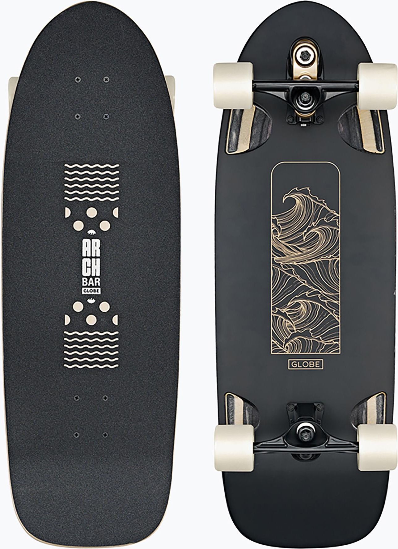 Walrus - Czarny/Peaking to ultraszeroki cruiser typu surf/skate z wbudowanym łukowym barem, zapewniającym kontrolę podczas manewrów przypominających surfowanie. Wykonany z 7-warstwowego klonu kanadyjskiego (Resin-7 hard rock maple) o wymiarach 10.25" x 31" x 16" WB (rozstaw osi), jeżdżący na …