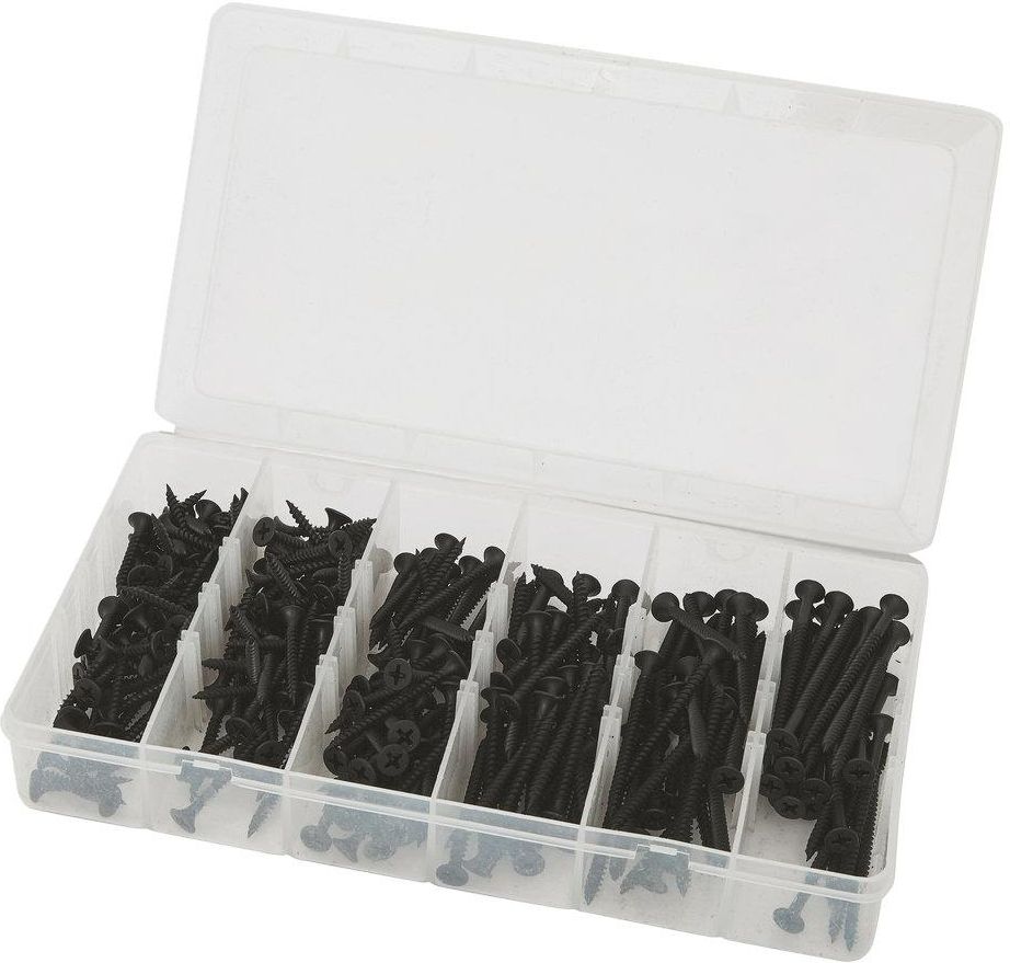 Zestaw wkrętów do drewna 240 elementów Fosfatowane na czarno wkręty do drewna w sześciu rozmiarach. Nacięcie Philips. Zestaw zawiera: 60 szt. 3,5 x 25 mm, 50 szt. 3,5 x 32 mm, 40 szt. 3,5 x 40 mm, 35 szt. 3,9 x 45 mm, 30 szt. 3,9 x 50 mm, 25 szt. 3,9 x 64 mm. Zestaw dostarczany w praktycznym pudełku. Specyfikacja techniczna Gwarancja (w miesiącach): 12 m.