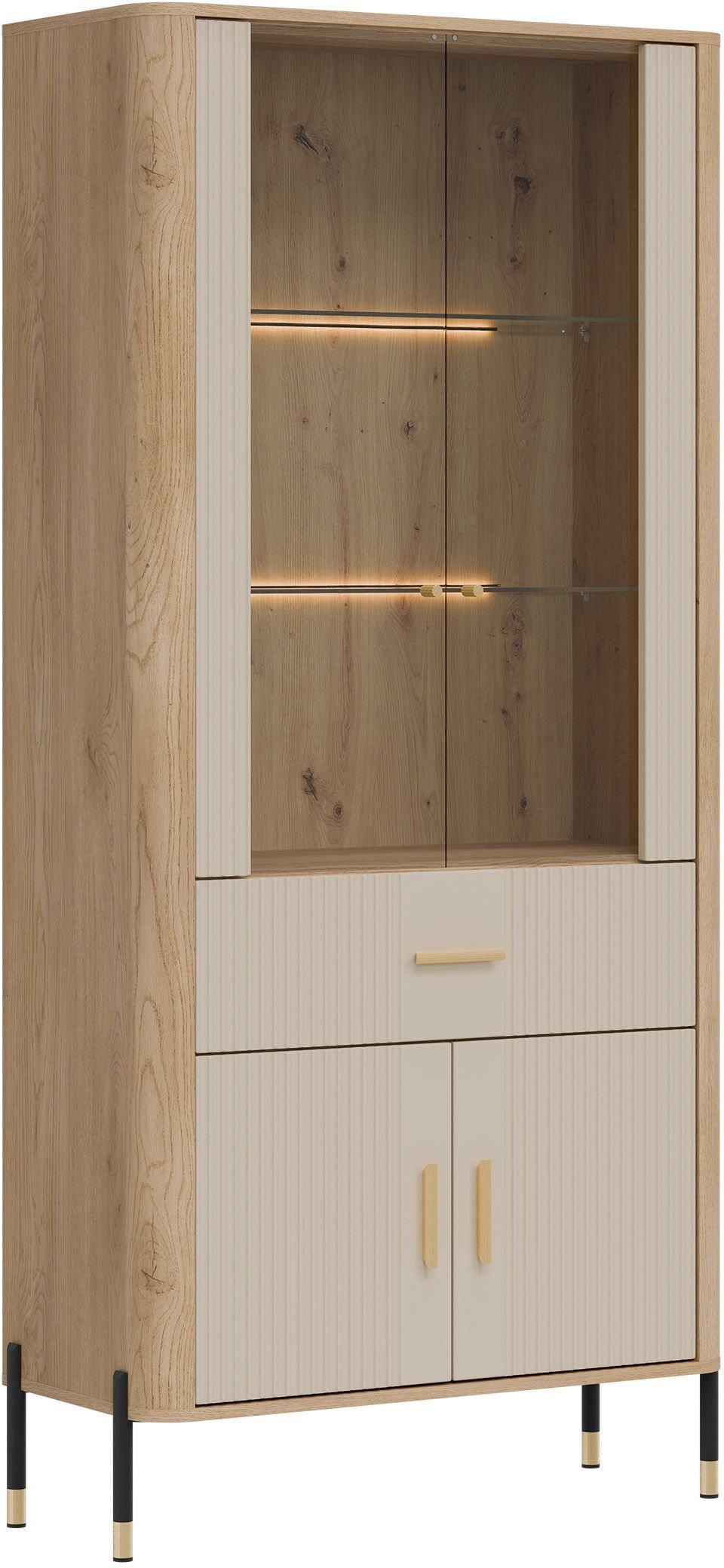 Liveo Witryna Wysoka Dante Dt14 4D1S Dąb Cremona Torro / Kaszmir Mat Złoty Uchwyt 187Cm Rzgów
