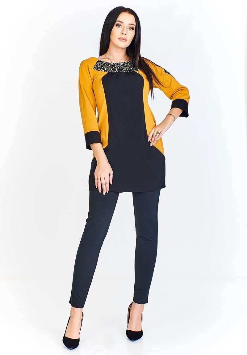 Tunika FTU306 CZARNY+MUSZTARDOWY Rzgów