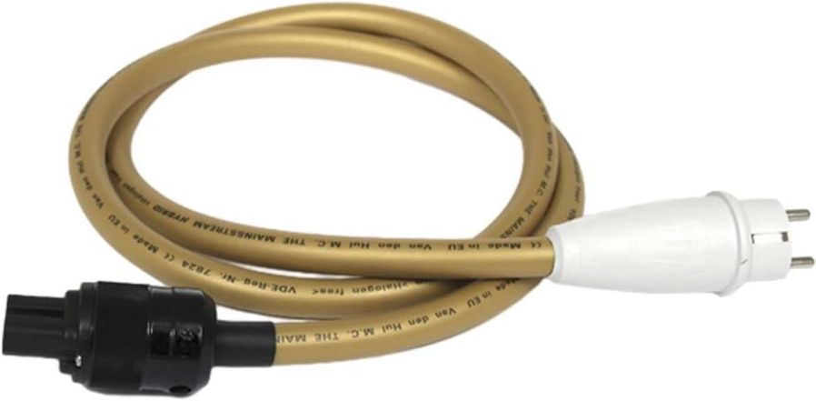 Van den Hul The Mainsstream Hybrid - kabel zasilający wysokoprądowy The Mainstream Hybrid to nowy model grubego kabla zasilającego Van den Hula. Kabel został zaprojektowany, by w sposób bezkompromisowy dostarczać prąd do sprzętu audio, wideo i profesjonalnego, który można określić mianem high-endu.Cechy główne: Unikalny filtr tłumiący zakłócenia. Wysoka pojemność napięcia ciągłego i maksymalna przezroczystość związana z bezustannymi wzrostami napięcia. Silne ekranowanie chroniące przed promieniowaniem zakłóceń elektromagnetycznych i radiowych (EMI i RFI) do wewnątrz i na zewnątrz kabla. Przewodniki i ekran wykonane są z najwyższej jakości materiałów obecnych również w kablach głośnikowych Van den Hula. Ekstremalna odporność i długowieczność. Ważną cechą kabla jest starannie zaprojektowany filtr tłumiący zakłócenia o szczególnych cechach: Przede wszystkim hybrydowa struktura przewodnika i jego odpowiednia konfiguracja funkcjonują jak wbudowany filtr sieciowy. Filtr ten efektywnie tłumi zakłócenia wysokich częstotliwości (obu typów, czyli trybu różnicowego i trybu wspólnego), bez wprowadzania limitacji natężenia prądu. W przeciwieństwie do konwencjonalnych filtrów sieciowych The Mainstream Hybrid nie zawiera żadnych komponentów szeregowych w ścieżce prądu. Impedancja szeregowa (reaktancja) jest nieobecna, a zatem kabel nie wprowadza żadnych ograniczeń, rezonansów i spowolnień. Zamiast tego zapewnia nielimitowany strumień czystego prądu. Po drugie, kabel wyposażony jest w wysokiej jakości gruby ekran. Spełnia on dwie ważne funkcje: 1. Powstrzymuje zakłócenia sieciowe przed promieniowaniem na zewnątrz w kierunku sprzętu i interkonektów. 2. Powstrzymuje zewnętrzne zakłócenia radiowe i elektromagnetyczne przed przedostaniem się do zasilania. Po trzecie, środkowa żółto-zielona żyła uziemienia cechuje się szerokopasmową niską impedancją, która pozwala na odpływ zakłóceń prądowych masy podłączonego sprzętu i minimalizuje szum. Jeśli chodzi o przesyłanie prądu, jak również o jego oczyszczanie i ochronę przed zakłóceniami na wysokich częstotliwościach, The Mainstream jest wybitnym kablem wielozadaniowym. Zapobiega przenikaniu szumu zanieczyszczającego prąd do interkonektów i przewodów sieciowych wewnątrz urządzeń, bez wprowadzania żadnych dodatkowych ograniczeń. Aby zachować te cechy musi posiadać długość co najmniej 1,5 m i dlatego nie jest sprzedawany w odcinkach krótszych. Grube przewodniki kabla The Mainstream Hybrid wykonane są z plecionki bardzo czystej miedzi OFC, pokrywanej zwartą warstwą bardzo czystego srebra. Kabel zawiera w sobie trzy neutralne i trzy gorące przewodniki. Każda z obu grup trzech przewodników ma efektywną powierzchnię przekroju 1,69 mm2, przy bardzo małej rezystancji szeregowej 1 Ohma / 100 m. Połączona rezystancja kontaktowa kabla i wtyczek często jest jednak wyższa, dlatego ważna jest stosowanie dobrej jakości wtyczek i gniazd. Mainstream Hybrid pozwala na przepływ prądu ciągłego o napięciu 16 amperów przy 230 V, co odpowiada maksymalnej mocy 3,7 kilowata. The Mainstream Hybrid wyposażony jest w gruby ekran, co w połączeniu ze złotą koszulką z Hullifleksu 4 sprawia, że kabel jest bardzo solidny. Ponadto ekran i przewodniki izolowane są tym samym materiałem, co chroni przed atakami chemicznymi z zewnątrz (korozja) i zapewnia kablowi długowieczność. Wszystkie powyższe cechy zapewniają bezkompromisowe i niezmienne w czasie brzmienie, dzięki czemu The Mainstream Hybrid jest doskonałym wyborem dla krytycznego audiofila oraz profesjonalisty.