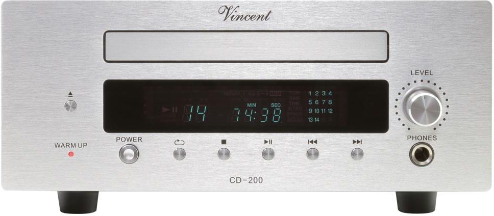 Odtwarzacz CD Vincent CD-200 CD-200 jest doskonałym partnerem wzmacniacza SV-200. Sygnał muzyczny konwertowany jest przez znakomite kości Burr-Brown PCM176. Podobnie jak w integrze, zastosowano w nim dwie lampy 6N1, które wygładzają brzmienie i czynią je bardziej naturalnym.