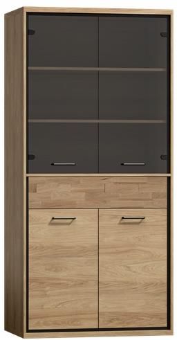 Witryna Mediolan 03 + wstawką deska kolorystyka natural hikora wymiary szerokość 92,2 cm głębokość 41 cm wysokość 197 cm front szuflady z drewna dębowego - łupany wzór możliwość zakupu wysokich nóżek na naszych aukcjach możliwość zakupu oświetlenia frontu i półek na naszych aukcjach charakterystyka …