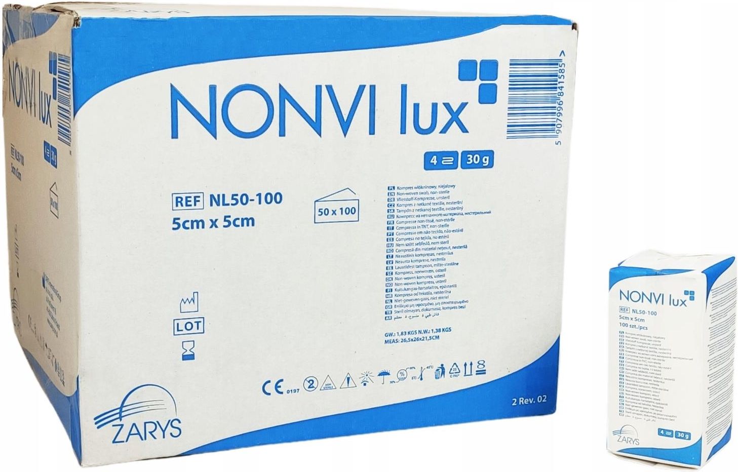 Kompresy włókninowe niejałowe 5x5 cm 50x100 szt. Kompres włókninowy niejałowy 5cm x 5cm x 100 szt NONVI lux Niejałowe kompresy NONVI lux są wykonane w 100% z miękkiej, doskonale chłonącej płyny hydrofilowej włókniny medycznej o gramaturze 30 g/m2. Materiał jest mocny i trwały, nie strzępi się …