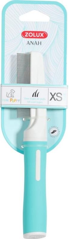 Zolux ANAH Grzebień do wyczesywania pcheł dla szczeniąt XS GRZEBIEŃ DO WYCZESYWANIA PCHEŁ - Dzięki 70 bardzo mocnym i wytrzymałym zębom, grzebień skutecznie usuwa pasożyty z sierści szczenięcia. Zaokrąglone na końcach zęby chronią skórę zwierzęcia przed podrażnieniem. Przeznaczone są do sierści każdej długości. Produkty wykonane są z tworzywa ABS, które jest szczególnie odporne na upływ czasu. Umieszczony pomiędzy rękojeścią a główką szczotki pierścień z gumy termoplastycznej sprawia, że produkt stabilnie leży w dłoni. Wszystkie metalowe elementy, tj. ostrza, zęby i wypustki, wykonano ze stali nierdzewnej. Wymiary produktu: 31 x 25 x 200mm Prezentujemy nową, kompletną gamę produktów do pielęgnacji ANAH, stworzoną w odpowiedzi na wszystkie potrzeby psów i kotów. Zaprojektowaliśmy nowy uchwyt, który zapewnia większą wygodę użytkowania i idealnie leży w dłoni, dzięki ergonomicznemu kształtowi, miękkiemu i przyjemnemu w dotyku wykończeniu SOFT TOUCH oraz powłoce z gumy termoplastycznej i miękkim wypustkom. Dodatkowo, niezależnie od rozmiaru produktu, uchwyt ma jeden rozmiar, który idealnie leży w dłoni. Produkty zaprojektowano w nowoczesnym stylu, w modnych, stonowanych kolorach: dla psów w kolorach turkusu i antracytu, dla szczeniąt w kolorach turkusu i bieli, a dla kotów - w kolorach pudrowego różu i bieli. Harmonijne i dynamiczne kształty produktów z pewnością przypadną do gustu użytkownikom. Jakość jest głównym atutem nowej kolekcji produktów do pielęgnacji ANAH. Nowa szata graficzna gamy ANAH jest spójna i harmonijna, zarówno pod względem kolorów, jak i kształtów, co ma ułatwić optymalną prezentację produktów na półkach i ich odpowiednią widoczność. Na opakowaniu umieszczono wszystkie potrzebne użytkownikowi informacje, aby pomóc w dokonaniu wyboru. Opis z tyłu opakowania zawiera informacje o funkcjach produktu, sposobie użycia i rodzaju sierści, do jakiej jest przeznaczony. Gama ANAH wpisuje się w nasze odpowiedzialne podejście do ochrony środowiska: dzięki wysokiej jakości zastosowanych materiałów zapewniającej trwałość produktów oraz dzięki opakowaniom jednostkowym i zbiorczym zaprojektowanym w sposób bardziej przyjazny dla środowiska (opakowania zoptymalizowano pod względem kształtu, by ograniczyć ich rozmiary, a tym samym ilość zużywanych materiałów. Zrezygnowano również z plastikowych osłon i metalowych nitów, aby ułatwić recykling opakowań).