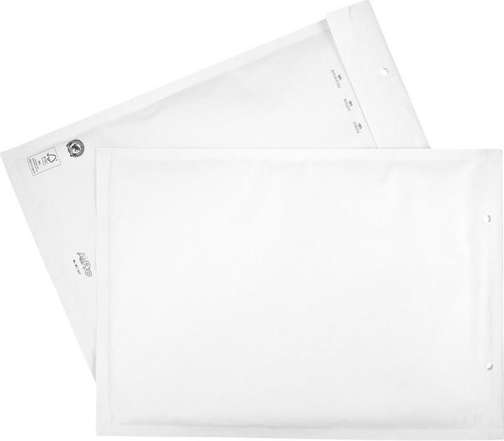 Koperty AirPro zostały stworzone z myślą o przesyłaniu delikatnych przedmiotów, jak również przedmiotów o większych wymiarach. Koperty dają gwarancję bezpiecznej wysyłki kruchych i delikatnych przedmiotów dzięki wyściełaniu folią bąbelkową i zastosowaniu wodoodpornej torby. Koperta w kolorze białym, rozmiar wewnętrzny: 240mm x 340mm, rozmiar zewnętrzny: 260mm x 350mm, format: 17/G*, rodzaj zamknięcia: HK.