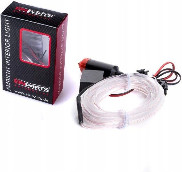 ŚWIATŁOWÓD EL WIRE 2M BIAŁY + PRZETWORNICA NAPIĘCIOWA - INVERTER ZASILAJĄCY 12V + WTYK GNIAZDA ZAPALNICZKI 12V . Światłowody dostępne są w 10 kolorach COOL WHITE - zimny biały ICE BLUE - jasnoniebieski BLUE - niebieski PURPLE - fioletowy GREEN - zielony RED - czerwony ORANGE RED - pomarańczowy PINK - różowy GOLD YELLOW - żółty LEMON YELLOW - limonkowy Pasek El Wire służy do dekoracji oświetleniowej samochodu - tuningu wizualnego. Światłowody Ambient Light są wykonane z najwyższej jakości materiałów i przy użyciu najnowszej technologii. El Wire nadaje wnętrzu samochodu nowoczesny i atrakcyjny wygląd idealnie akcentując krawędzie tapicerki samochodu. Światłowody Ambient Light wykorzystują technologię światła elektroluminescencyjnego. Światło nie męczy wzroku w nocy. Jest nierażące, liniowe i równomierne na całej długości światłowodu. Dostępny jest w 10 kolorach. El wire jest w wersji z kołnierzem dzięki czemu idealnie nadaje się do montażu w szczelinach tapicerki samochodu, deski rozdzielczej, mebli domowych i nie tylko. Pasek jest płaski i elastyczny. Jego płaska część służy do wsunięcia w szczelinę tapicerki. Przewód można ciąć w dowolnym miejscu. Dostępne są u nas również rozgałęziacze do tworzenia całych systemów oświetleniowych. El wire można podpiąć bezpośrednio do gniazda zapalniczki bądź wpiąć się w instalację samochodu o napięciu 12V w innym miejscu (przy skrzynce z bezpiecznikami, przy sterowniku otwierania szyb, przy stacyjce - w tym wypadku światłowód uruchomi się po przekręceniu kluczyka w stacyjce). Zapotrzebowanie na prąd jest minimalne. Nie sprzedajemy światłowodów lutowanych w garażu. Nasze produkty są prosto od producenta oryginalnie zwinięte, zapakowane w woreczki strunowe co daję gwarancję produktu. W domowych warunkach nie ma możliwości przedłużania i łączenia światłowodów. Aby je łączyć należy użyć rozgałęziacza dostępnego na naszych aukcjach. Nie sprzedajemy światłowodów lutowanych w garażu. PARAMETRY ŚWIATŁOWODU Długość światłowodu: 5 metrów - można ciąć w dowolnym miejscu Grubość światłowodu: ~2mm Grubość i szerokość kołnierza: ~0,6mm x ~6mm - można przyciąć Zużycie prądu: 0,3W/1metr Napięcie wejściowe: 12V Napięcie pracy światłowodu: 80-110V AC Światłowód jest wodoodporny Na Naszych aukcjach dostępne są inne długości: 1m 2m 3m 4m 5m 10m A także Przetwornice 12V i 24V do przewodów El Wire Rozgałęźniki do przewodów El Wire Wtyki do gniazda zapalniczki 12-24V Zasilacz do światłowodu na baterie paluszki AA (do stosowania światłowodów np. w przypadku wszycia ich w ubrania) Zasilacz do światłowodu USB UWAGA! Kolor światłowodu może nieco odbiegać od tego który widzisz na monitorze. Każdy monitor inaczej wyświetla kolor, jest to zależne od indywidualnych ustawień. Kolor włączonego światłowodu jest inny niż kolor wyłączonego światłowodu - jest to normalne. Przykładowo światłowód który na zdjęciu wygląda jak biały świeci na niebiesko, a pomarańczowy na żółto. Kolor czerwony wpada w pomarańczowe tony w skutek czego niektórym klientom wydaje się pomarańczowy. PARAMETRY PRZETWORNICY Zasilanie wejściowe: 12V DC Pobór mocy: 0.3W / 1metr Wymiary: 38x22x19mm Długość przewodu od invertera do wtyczki światłowodu: 50cm Długość przewodu od invertera do wtyku gniazda zapalniczki: 40cm Czerwony przewód "+", czarny "-" Przewodem który ma wtyczkę zasilamy światłowód. Przetwornicą można zasilać od 1 do 5 metrów światłowodu.