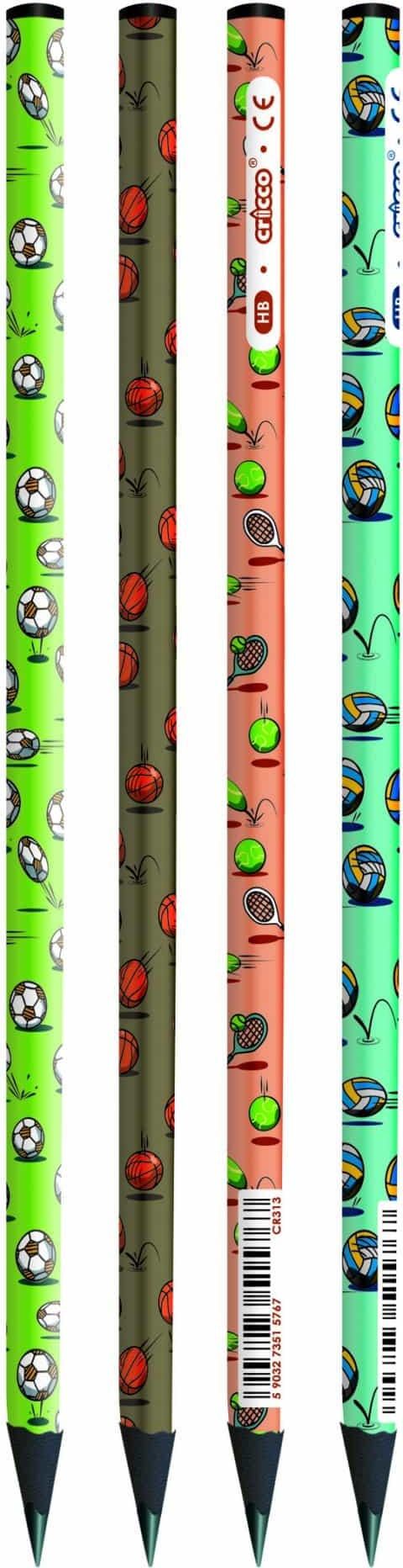 ołówek z wysokiej jakości drewna barwionego w czarnym kolorze dostępny w czterech wzorach z akcentami sportowymi trójkątny kształt wyrabia prawidłowych chwyt i zapewnia komfort użytkowania oryginalnie zatemperowany wytrzymały, wzmocniony grafit o twardości HB Prosimy o informację w komentarzu do zamówienia o wybranym kolorze produktu. W przypadku braku wybranego koloru wysyłamy kolor losowy.
