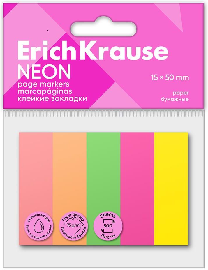 Erich Krause Zakładki Indeksujące 15X50Mm, 500 Kartek, 5 Kolorów Neonowych, 61561 Sandomierz