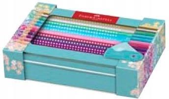 Kredki + temperówka Faber-Castell - 20 kolorów Niepowtarzalny zestaw zawierający kredki ołówkowe Sparkle i temperówkę Sleeve mini od renomowanej marki Faber-Castell gwarantuje doskonałą jakość i bezpieczeństwo, stanowiąc idealny prezent dla każdego małego artysty. Kredki w wyjątkowych kolorach Kredki charakteryzują się głębokim i intensywnym nasyceniem kolorów, które ożywią każdy rysunek. Na powierzchni kredek znajdują się lśniące punkciki, dodające blasku każdej kreacji. Zestaw zawiera aż 20 różnokolorowych kredek. Wytrzymałe i bezpieczne Kredki wyposażone są w specjalną technologię klejenia (SV), która nadaje im wytrzymałość, minimalizując ryzyko łamania grafitu, nawet podczas niezamierzonego upuszczenia. Wykonane są z miękkiego, ale wytrzymałego drewna z certyfikowanych plantacji, które łatwo temperować. Eko i zdrowe Kredki pokryte są lakierem na bazie wody, co czyni je bezpiecznymi dla środowiska i zdrowiem dzieci, jednocześnie gwarantując ich trwałość. Atracyjne opakowanie Kredki Sparkle od Faber-Castell zapakowane są w estetyczne, metalowe pudełko w odcieniu turkusu, ozdobione motywem kwiatowym. Dodatkowo, w zestawie znajduje się temperatura mini, również w turkusowym kolorze, co powoduje że całość prezentuje się elegancko i stylowo. EAN: 4005402016419