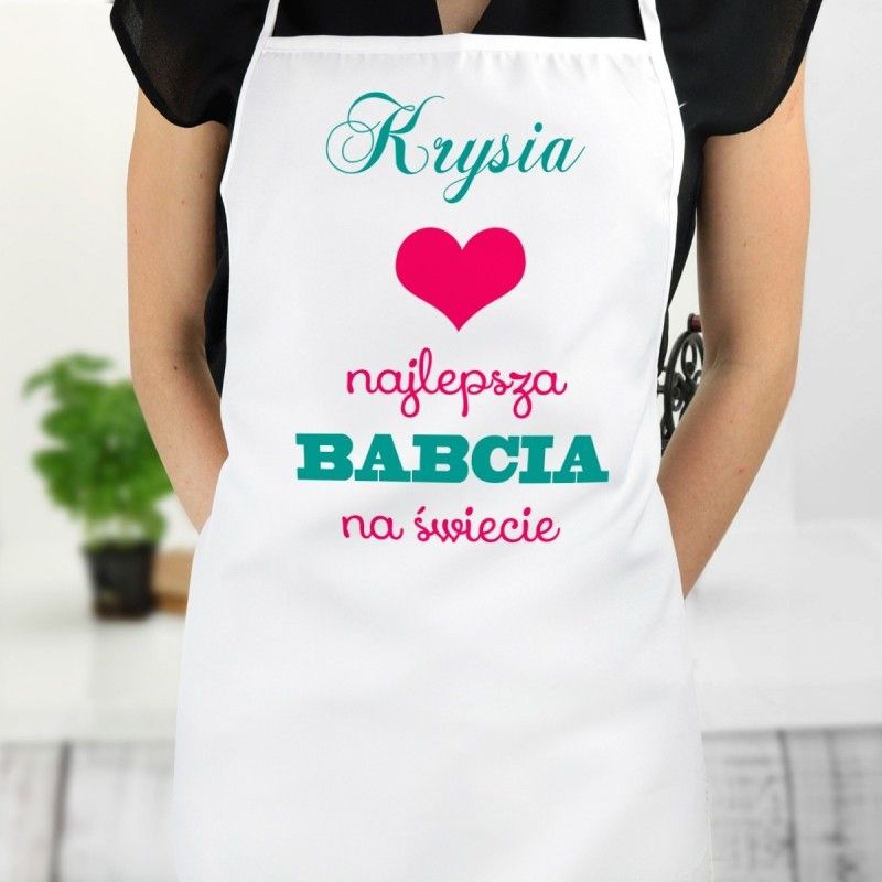 Personalizowany fartuszek dla babci Gotowanie, czyli to co nasze babcie robią wyśmienicie. W zamian za pyszne obiady, podaruj jej personalizowany fartuszek kuchenny! Świetna propozycja jako prezent z okazjijej urodzin, imienin lub dnia babci. Bardzo praktyczna pamiątka, dzięki której każda osoba obdarowana poczuję się z pewnością wyjątkowo! Nadruk wykonujemy metodą sublimacyjną, dzięki czemu jest on niewyczuwalny w dotyku i trwały. Zaufaj nam! Fajne rzeczy do kuchni to nasza specjalność. Parametry wymiary: szer. 59 cm x dł. 73cm materiał: poliester kolor: biały gramatura: ok. 200-220g/m2 nadruk wykonywany jest techniką sublimacji Personalizacja Aby w pełni spersonalizować produkt, prosimy o przesłanie potrzebnych danych na adres email, a nasi graficy zajmą się resztą :)