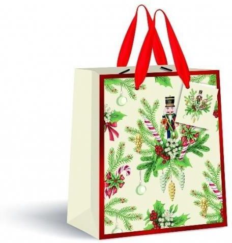 Duża torebka prezentowa o wymiarach 33 x 46 x 13 cm to praktyczny i estetyczny sposób na zapakowanie upominku. Występuje w uroczym beżowym kolorze z dodatkiem czerwieni i zieleni, czyli typowych kolorów świątecznych. Torebka jest wykonana z solidnego papieru, a wzmocnione uchwyty zapewniają wygodne trzymanie i stabilność zawartości. To wybór na: święta oraz drobne upominki firmowe. To proste, efektowne i ekonomiczne opakowanie, które sprawia, że nawet niewielki prezent wygląda bardziej wyjątkowo.