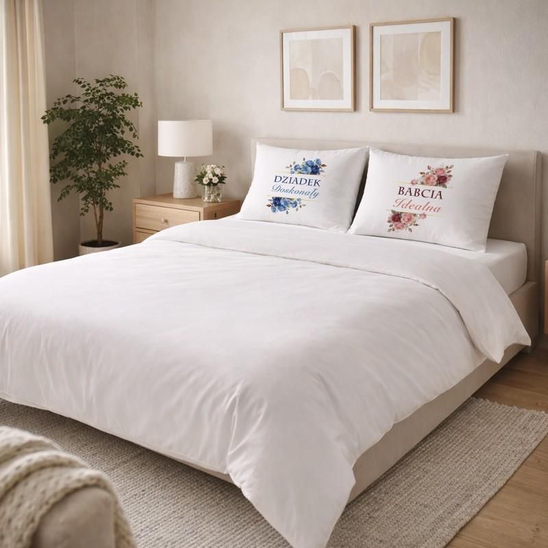 Komplet pościeli 160x200 z nadrukiem dedykacji – idealny prezent na Dzień Babci i Dziadka Rozmiar 160x200 cm – idealny do standardowej dwuosobowej kołdry Wyjątkowy nadruk z dedykacją – stworzony specjalnie na Dzień Babci i Dziadka Komplet 3-elementowy – poszwa na kołdrę + 2 poszewki na poduszki Miękki i przyjemny w dotyku materiał – komfort snu każdej nocy Trwały nadruk – odporny na spieranie i blaknięcie kolorów Oddychająca tkanina – odpowiednia na każdą porę roku Elegancki design – pasuje do klasycznych i nowoczesnych sypialni Idealny pomysł na prezent – praktyczny, a jednocześnie pełen emocji Gotowy do wręczenia – doskonały wybór na Dzień Babci i Dziadka Parametry W skład kompletu wchodzi 1 szt. poszwa na kołdrę rozmiar: 160x200cm 2 szt. poszewka na poduszkę 70x80cm zapięcie zakład hotelowy: przy poszwie: 30cm, przy poszewce: 15cm kolor: biały gładki skład tkaniny: 20 % bawełna + 80 % poliester komplety pościeli szybko schną nie wymagają prasowania jednobarwna pościel jest elegancka i miła w dotyku możliwość prania w temperaturze do 60 stopni C Efekt zaskoczenia gwarantowany! Podaruj Babci i Dziadkowi prezent, który łączy funkcjonalność z wyjątkowym przekazem i codziennie przypomina o Twojej miłości Pudełko prezentowe Każdy komplet zapakowany jest w pudełko eko-kraft. Otrzymujesz prezent gotowy do wręczenia. Nadruk Wybrany symbol wzoru i dane do personalizacji podaj w uwagach do zakupu.
