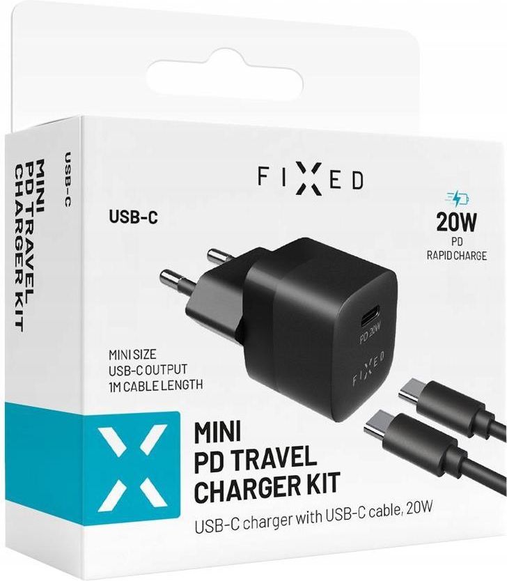 Ładowarka Sieciowa Fixed Mini Usb-C Pd 20W + Kabel 1M (Fixc20M-Cc-Bk) Czarna (1665812) Sandomierz