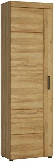 Bieliźniarka z kolekcji Cortina, od Meble Wójcik, to idealny wybór do sypialni lub garderoby, w której użytkownik pragnie stworzyć funkcjonalny system przechowywania odzieży. Mebel dysponuje aż 6 wnękami, w których można poukładać nie tylko bieliznę, ale i inne elementy stylizacji. Szafa zajmuje przy tym niewiele miejsca, dzięki czemu sprawdzi się nawet w małym pokoju sypialnym. Jak zbudowana jest szafa bieliźniarka Cortina? Szafa bieliźniarka Cortina została wykonana z wysokiej jakości płyty laminowanej, odpornej na zarysowania, wilgoć czy wysoką temperaturę. Jej gładka powierzchnia jest łatwa do utrzymania w czystości i niewymagająca w pielęgnacji. Mebel został zagospodarowany za pomocą pięciu półek. Posiada drzwiczki na zawiasach z systemem cichego domyku oraz poręczny uchwyt metalowy, który pozwala uchylać jego front bez tworzenia na nim śladów czy zabrudzeń. Jak wygląda szafa jednodrzwiowa Cortina? Prezentowana szafa z półkami jednodrzwiowa Cortina ma prostą, nowoczesną bryłę i ponadczasową kolorystykę. Mebel wybarwiono na dekor Dąb Grandson, który dodaje aranżacji ciepła i elegancji. Szafa sprawdza się we wnętrzach klasycznych i minimalistycznych, zwłaszcza w modnym lofcie. Można bez obaw wykorzystać ją w małym pomieszczeniu, nie prowadząc do optycznego przytłoczenia jego wystroju. Wymiary bieliźniarki Szerokość: 58 cm Głębokość: 37,4 cm Wysokość: 195 cm