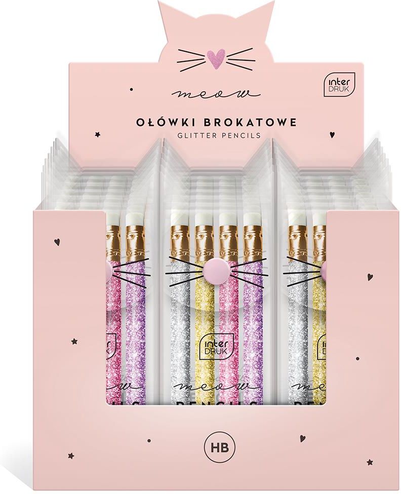 Zestaw mini ołówków Interdruk Glitter. Ołówki ze średnio twardym grafitem, nadające się równie dobrze do pisania, rysunku technicznego oraz szkicowania. Twardość: HB Kolor oprawki: MIX Przekrój oprawki: okrągły Oprawka z drewna naturalnego Na końcu oprawki gumka do wymazywania Ołówki w miękkim etui z klipsem Ilość: 4 szt.