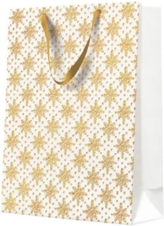 Paw Torba Prezentowa 30X41X12cm Grunge Textured Snowflakes Gold Sandomierz