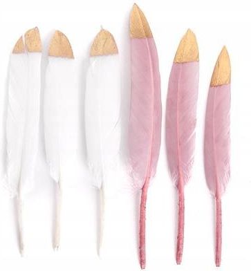Piórka dekoracyjne, białe i różowe 13-15 cm 6 szt Sandomierz
