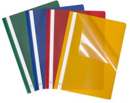Klasyczne skoroszyty w formacie A4, wykonane z polipropylenowej folii. Przednia okładka o grubości 120 mic. jest przezroczysta dla doskonałej widoczności dokumentów. Tylna okładka o grubości 170 mic. została wykonana z nieprzezroczystej, czarnej folii. Metalowe wąsy bezpiecznie mocują dokumenty w …