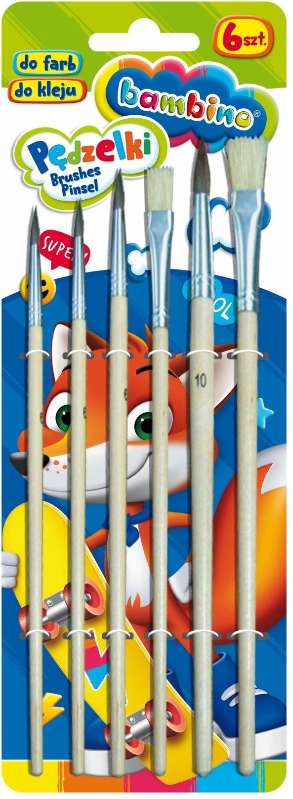 BAMBINO PĘDZLE PĘDZELKI SZKOLNE ZESTAW 6 SZT CO WYRÓŻNIA NASZ PRODUKT **Kompletny zestaw rozmiarów** - 6 różnych rozmiarów pędzelków (2, 4, 6, 8, 10, 12) umożliwiających realizację każdej techniki malarskiej. **Uniwersalność zastosowania** - idealnie sprawdzają się z farbami akwarelowymi, plakatowymi oraz podczas aplikacji kleju. **Trwała konstrukcja** - wysokiej jakości włosie zachowuje elastyczność i kształt przez długi czas użytkowania. **Bezpieczeństwo użytkowania** - produkt spełnia wszystkie normy bezpieczeństwa dla artykułów szkolnych i przedszkolnych. ROZBUDZA KREATYWNOŚĆ I WYOBRAŹNIĘ! Ten profesjonalny zestaw 6 pędzelków Bambino charakteryzuje się nie tylko przemyślanym doborem rozmiarów (2, 4, 6, 8, 10 i 12), ale także wyjątkową uniwersalnością zastosowania. Idealnie rozprowadza zarówno farby akwarelowe jak i plakatowe, a także sprawdza się podczas precyzyjnej aplikacji kleju, zapewniając młodym artystom pełną kontrolę nad każdą kreacją. WSPIERA ROZWÓJ ZDOLNOŚCI MANUALNYCH I KONCENTRACJI! Pędzelki te gwarantują komfort użytkowania podczas długich sesji plastycznych. Ergonomiczny kształt i odpowiednio dobrana wielkość zapewniają pewny chwyt, umożliwiając dzieciom swobodną ekspresję artystyczną bez zmęczenia. Doskonale sprawdzają się zarówno w edukacji przedszkolnej, jak i szkolnej. BUDUJE PEWNOŚĆ SIEBIE PRZEZ SZTUKĘ! Produkt ten wyróżnia się także trwałością konstrukcji i bezpieczeństwem użytkowania. Wysokiej jakości włosie pędzelków zachowuje swoją elastyczność i kształt nawet po intensywnym użytkowaniu, co zapewnia długotrwałą satysfakcję z tworzenia i gwarantuje, że każda praca plastyczna będzie wykonana z najwyższą precyzją. ROZWIJA UMIEJĘTNOŚCI SPOŁECZNE I WSPÓŁPRACY! Kompletny zestaw umożliwia realizację różnorodnych technik malarskich - od delikatnych detali po szerokie płaszczyzny kolorystyczne. Zróżnicowane rozmiary pędzelków pozwalają na eksperymentowanie z fakturą i stylem, rozwijając artistyczne umiejętności i otwierając przed młodymi twórcami świat nieograniczonych możliwości plastycznych. SPECYFIKACJA Stan: Nowy Kod producenta: 5001697 Rodzaj: pędzelki mieszane Marka: Bambino Bohater / Bajka: brak Kolor: wielokolorowy Liczba sztuk w zestawie: 6 szt. EAN (GTIN): 5903235001697 Płeć: chłopcy, dziewczynki