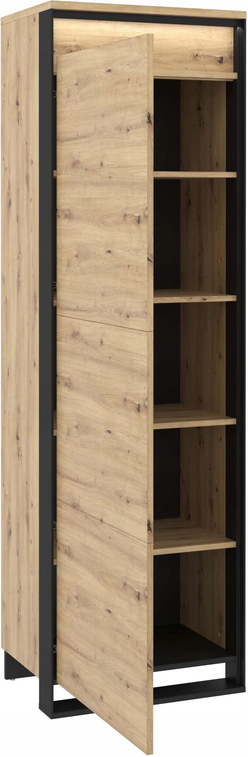QUANT QA-02 - szafa 1d z oświetleniem - dąb artisan/czarny QA2DAC, 60 cm x 195 cm x 41 cm Kompaktowa szafa jednodrzwiowa z czterema półkami i oświetleniem ledowym. Niewielkie gabaryty szafy sprawiają, że mebel zmieści się w każdym pomieszczeniu. Oryginalny dekor, czarne, smukłe podpory oraz …