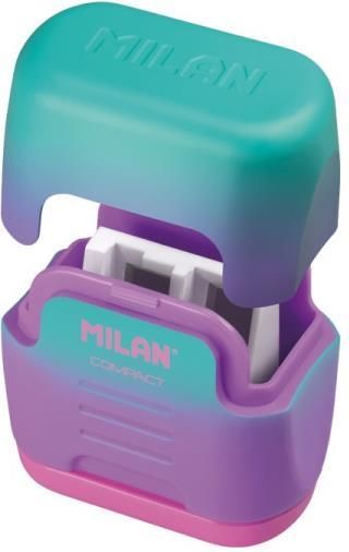 Temperówka podwójna z pojemnikiem pastelowa COMPACT SUNSET Producent: MILAN Podwójne temperówki szkolne w kolorach zachodzącego słońca z kolekcji MILANSUNSET. UNIWERSALNE - na cienkie i grube ołówki oraz kredki. Idealne do użytku szkolnego. PRAKTYCZNE - pojemny pojemnik na ścinki. ODPORNE - ostre i wytrzymałe ostrza ze stali węglowej idealnie nadające się do wszystkich rodzajów ołówków. BEZPIECZNE - posiadają system bezpiecznych ostrzy, który zapobiega odłączeniu się ostrza od korpusu temperówki. 4 KOLORY - dostępne w 4 kolorach: żółtym, fioletowym, różowym i turkusowym. ORYGINALNE - produkt stworzony przez własny dział badawczo-rozwojowy MILAN. Rozmiar temperówki: 4,8 x 3,9 x 2,5 cm.