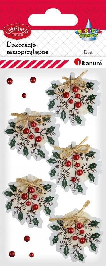 Dziecięce NAKLEJKI Do Dekorowania KARTEK Titanum Craft-Fun Świąteczne Ładne Producent: Titanum Dekoracje samoprzylepne papierowo-foliowe 3D wzór: świąteczne gałązki z jutową kokardą wymiary: 35 x 34 mm i czerwone perełki o średnicach 4 mm i 3 mm 11 sztuk. Dlaczego warto kupić te naklejki Naklejki …