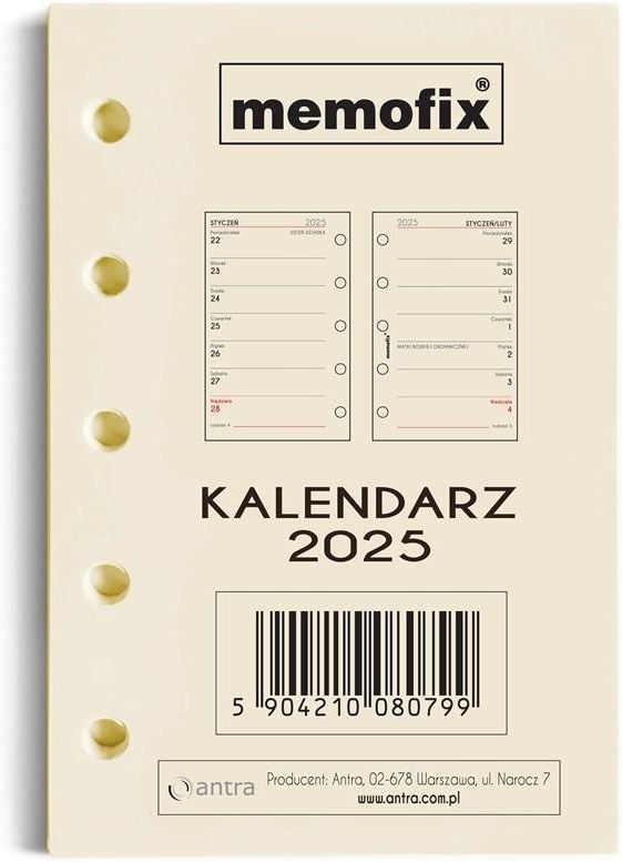 Wkład kalendarzowy 2025 A7 MEM/M/TNS Producent/osoba odpowiedzialna za bezpieczeństwo produktuAntra Ryszard Polubiecul. Narocz 7 02-678 Warszawainfo@antra.com.pl+ 48 22 851 44 55