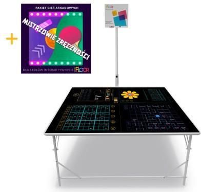 SmartFloor 2 in 1 – stół i podłoga interaktywna w jednym! Zestaw zawiera: 1 x podłoga interaktywna SmartFloor Mobile 1 x dedykowany stół do projekcji 160 x 150 cm 1 x dedykowany pakiet aplikacji Mistrzowie Zręczności 5 x pakiety aplikacji na start: Mali Odkrywcy, W krainie kolorów, Rusz głową, …
