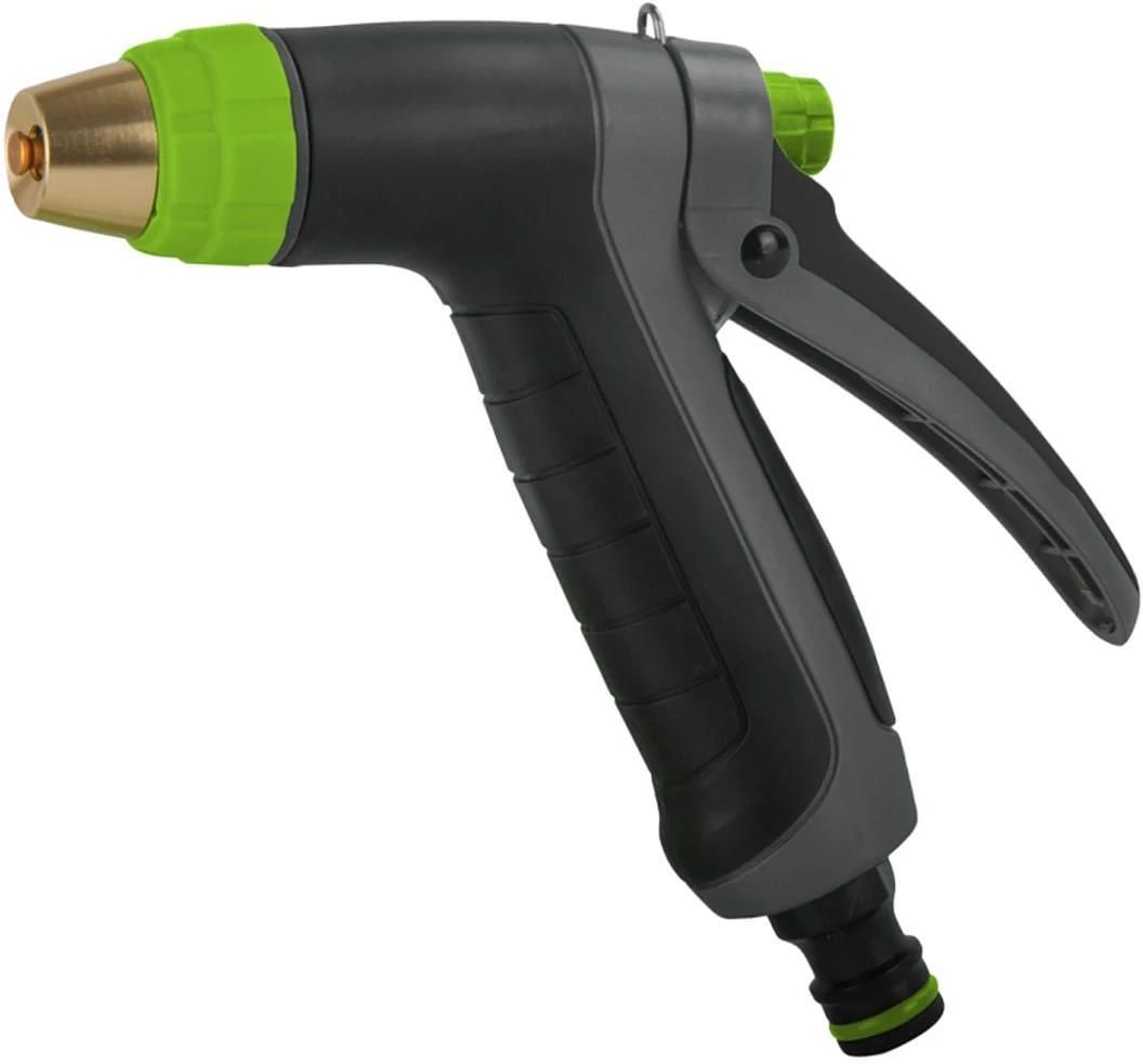 Pistolet do zraszania regulowany metalowy Pistolet do zraszania ogrodu oraz kwiatów to niezbędny element wyposażenia każdego ogrodnika! Poprzez regulację strumienia wody możemy znakomicie dostosować strumień do naszych potrzeb. Parametry: ✅ Kolory dominujące: czarny, szary, zielony ✅ Materiał: Aluminium, TPR ✅ Regulowany: Tak Zalety: ⭐ Pistolet posiada regulację strumienia wody co pozwala dostosować strumień do naszych potrzeb. ⭐ Użyte materiały gwarantują solidność, trwałość oraz lekkość. ⭐ Kompatybilność - możemy go łączyć z produktami innych marek.