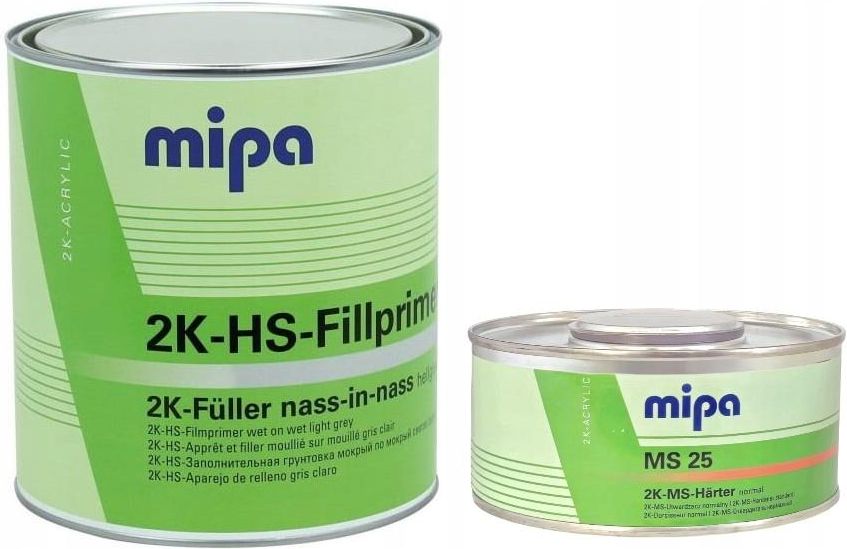 MIPA Podkład FILLPRIMER HS Mokro na mokro 1L+utw.jasno szary 2K Poliuretanowy podkład wypełniający Mipa mokry-na-mokry charakteryzuje się: możliwością polakierowania już po ok. 15 minutach od aplikacji. Lakier nawierzchniowy aplikowany na podkład nie traci połysku. Opracowany specjalnie do napraw …