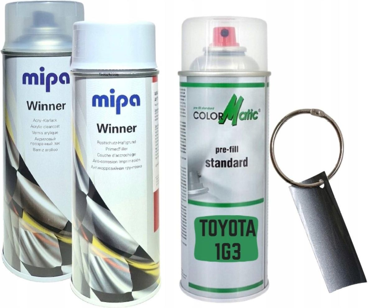 ZESTAW LAKIER SAMOCHODOWY SPRAY TOYOTA 1G3 W skład prezentowanego zestawu wchodzi: Lakier samochodowy : TOYOTA 1G3 - SPRAY 375ml Lakier bezbarwny : MIPA - SPRAY 400ml Podkład akrylowy : MIPA - SPRAY 400ml LAKIER SAMOCHODOWY SPRAY TOYOTA 1G3 Spray doskonale sprawdza się do malowania niewielkich …