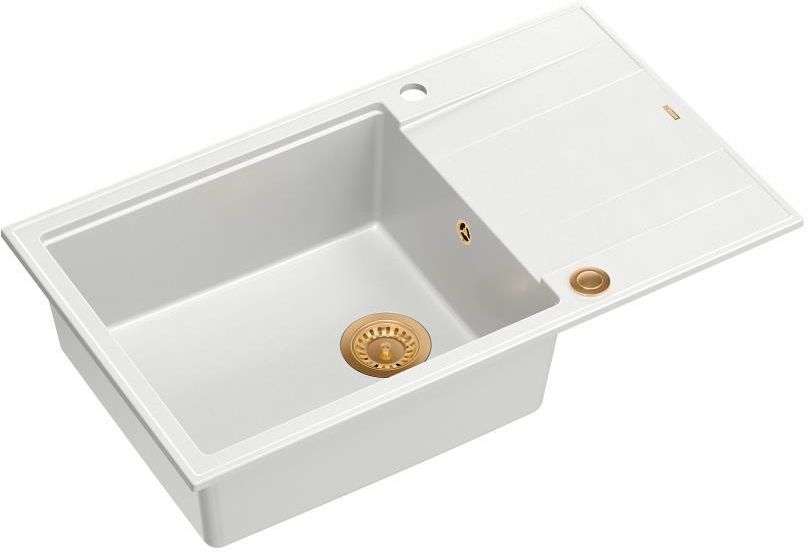 Materiał GraniteQ stworzony jest z drobnych cząsteczek granitu (75-80%) połączonych ze sobą za pomocą wysokiej jakości spoiwa (20-25%), dzięki czemu zlewozmywak charakteryzuje się wyjątkową wytrzymałością i odpornością. Zastosowanie bardzo drobnych cząsteczek granitu minimalizuje przestrzeń wypełnioną spoiwem, dzięki czemu udało się uzyskać zlewozmywak jedwabiście gładki i delikatny w dotyku, co również ma ogromne znaczenie podczas czyszczenia i konserwacji, ale przede wszystkim dla higieny i zachowania czystości. GraniteQ to nowoczesny materiał w opalizujących kolorach uzyskanych dzięki domieszce metalicznych drobinek. Nawet najbardziej wymagający użytkownicy będą usatysfakcjonowani gdy światło z oświetlenia umieszczonego nad blatem sprawi, iż kuchnia zabłyszczy delikatnym połyskiem swojej nowej biżuterii: zlewozmywaka marki Quadron. Efekt ten zostanie spotęgowany dzięki dodaniu baterii, odpływu i przelewu wykonanych ze stali szlachetnej SteelQ. Cechy zlewozmywaka: Zlewozmywak wykonany z GraniteQ gwarantuje najwyższą higieniczność i trwałość. Nowoczesne wzornictwo – dostosowane do aktualnych trendów. GraniteQ – zapewnia dużą twardość, trwałość i higieniczność powierzchni Rozetka przelewu również wykonana jest ze stali szlachetnej SteelQ w kolorze dopasowanym do koloru pozostałych elementów co jeszcze bardziej podkreśla jego urodę. Głębokie i pojemne komory zlewozmywaków Quadron to ich cecha wyróżniająca, która zapewnia duży komfort użytkowania. Zlewozmywak wyposażony jest w odpływ Push-2-Open 3 1/2" z syfonem ze stali szlachetnej SteelQ w kolorze dopasowanym do pozostałych elementów co nadaje produktowi elegancki wygląd oraz w syfon z możliwością podłączenia zmywarki lub pralki