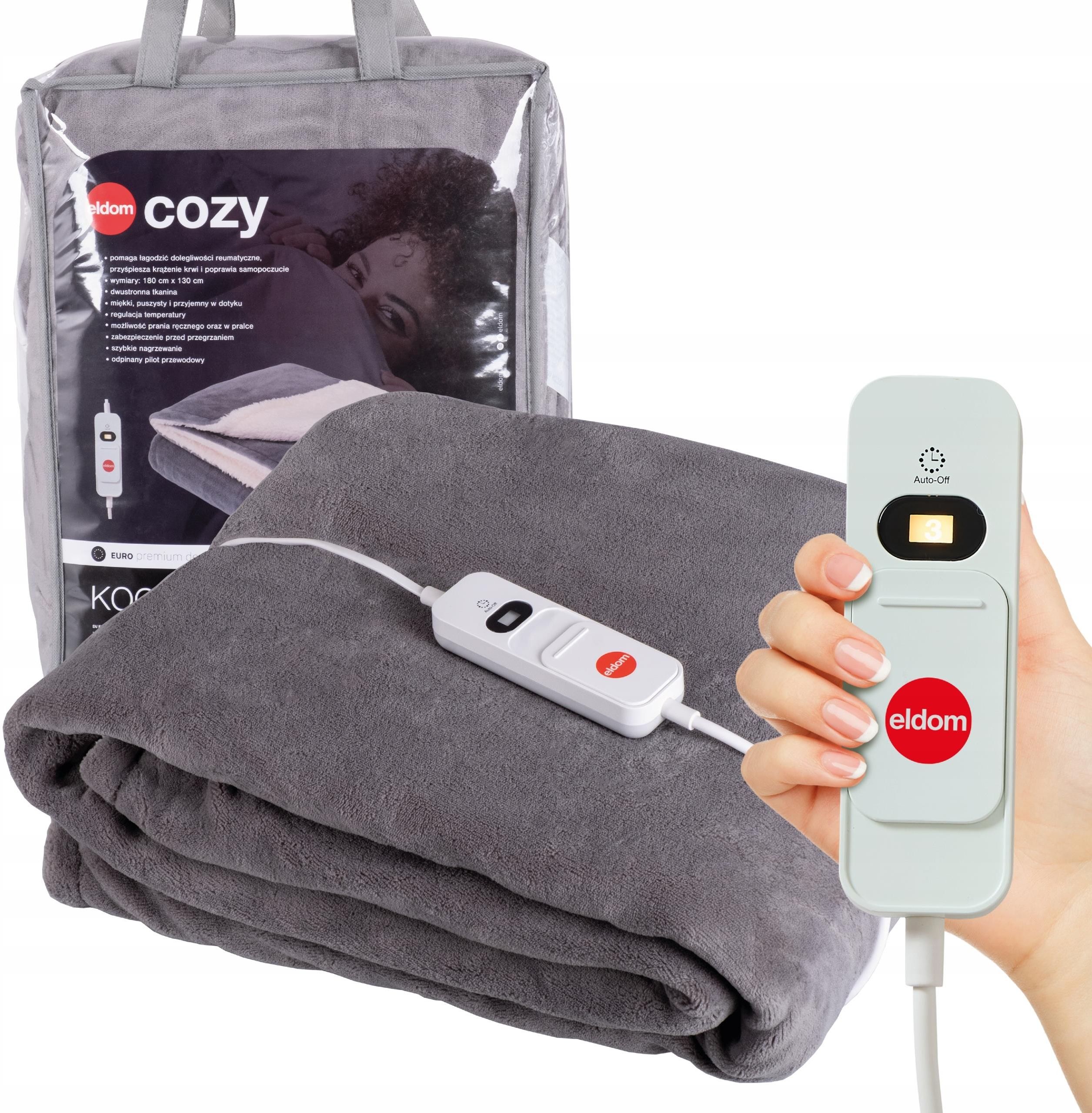 KOC ELEKTRYCZNY ELDOM KT200 COZY – OTUL SIĘ CIEPŁEM! Zimne wieczory? Poranne chłody? A może napięte mięśnie i gorsze samopoczucie?✨ Poznaj miękki, puszysty i bezpieczny koc elektryczny Eldom, który otuli Cię ciepłem i pozwoli się odprężyć – tak, jak lubisz najbardziej. Prosto, bezpiecznie i higienicznie ☑️Odpinany przewodowy pilot – sterujesz temperaturą w prosty sposób, a po odłączeniu łatwo przechowasz lub wypierzesz koc ☑️Zabezpieczenie przed przegrzaniem – śpisz spokojnie i bez obaw ☑️Szybkie nagrzewanie – przyjemne ciepło odczuwalne już po kilku minutach Miękkość, którą czuć od pierwszego dotyku Koc wykonano z dwustronnej tkaniny w nowoczesnych kolorach – z jednej strony jasnoszary, z drugiej czysto biały. Tkanina jest: ✴️przyjemna i delikatna dla skóry ✴️puszysta i otulająca ✴️stylowa – świetnie prezentuje się na łóżku czy sofie Działa terapeutycznie Ciepło generowane przez koc może: ☑️łagodzić bóle reumatyczne i napięcie mięśni ☑️poprawiać krążenie krwi ☑️pomagać w odprężeniu po ciężkim dniu ☑️przyspieszyć zasypianie i poprawić jakość snu To nie tylko komfort, ale też codzienna troska o Twoje zdrowie i dobre samopoczucie. Ciepło na Twoich zasadach Koc posiada regulację temperatury, więc bez problemu dopasujesz poziom ciepła do swoich preferencji. Masz ochotę tylko na delikatne dogrzanie, a może potrzebujesz intensywnego ciepła przy bólach mięśni lub stawów? Wybór należy do Ciebie! Duży i wygodny format Dzięki wymiarom 180 × 130 cm: ☑️możesz komfortowo się nim przykryć lub położyć go na całej powierzchni łóżka ☑️sprawdzi się zarówno w łóżku, jak i na kanapie ☑️może służyć jednej osobie lub być dzielony z drugą połówką Dlaczego warto? Doskonały na zimę i przejściowe pory roku Idealny na prezent dla bliskiej osoby Pomoc w dolegliwościach bólowych i napięciu Stylowy wygląd i miękka tkanina Komfort termiczny zawsze wtedy, gdy tego potrzebujesz Łatwy do utrzymania w czystości Nie musisz się martwić o pielęgnację – koc elektryczny Eldom jest przystosowany do prania: ✴️Można go prać ręcznie lub w pralce w temperaturze 30°C (po wcześniejszym odpięciu pilota). ✴️Tkanina szybko schnie i zachowuje swoją miękkość nawet po wielu praniach. ✴️Dzięki temu koc pozostaje zawsze świeży, czysty i gotowy do użycia – niezależnie od pory roku. SPECYFIKACJA: ✅pomaga łagodzić dolegliwości reumatyczne, przyśpiesza krążenie krwi i poprawia samopoczucie ✅wymiary: 180 cm x 130 cm ✅dwustronna tkanina ✅miękki, puszysty i przyjemny w dotyku ✅regulacja temperatury ✅możliwość prania ręcznego oraz w pralce ✅zabezpieczenie przed przegrzaniem ✅szybkie nagrzewanie ✅odpinany pilot przewodowy ✅EAN: 5908277389543 ✅kolor: szaro-biały W ZESTAWIE: KOC ELEKTRYCZNY ELDOM KT200 instrukcja w języku polskim oryginalna torba na koc