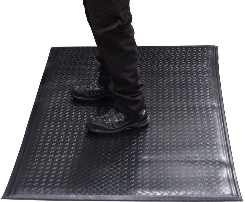 Komfort pracy Mata z najwyższymi właściwościami antyzmęczeniowymi została zaprojektowania w celu poprawy jakości stanowiska pracy. Zastosowanie odpowiedniego podłoża przy pozycji stojącej pozwala na zwiększenie komfortu przy jednoczesnym wzrościeefektywności pracownika. Podkład pozwala zniwelować dolegliwości takie jak ból stóp, nóg oraz pleców, które pojawiają się podczas długotrwałego stania. Zapewnia dobrą amortyzację oraz wygodę użytkowania. Mata skutecznie pomaga w walce ze zmęczeniem na stanowisku pracy. Konstrukcja Mata została wykonana ze specjalnej, grubszej pianki PVC, która nadaje jej najwyższe właściwości antyzmęczeniowe. Dodatkowo zapewnia izolację dla pracownika od zimnej posadzki. Krawędzie maty cięte są pod kątem 45°, dzięki czemu niwelują ryzyko potknięcia się. Zaleca się stosowanie maty w pracy wielozmianowej przy lekkich lub średnich pracach przemysłowych, w suchym środowisku. Produkt przeszedł testy pod kątem odporności ogniowej BS EN 13501-1. Łatwe czyszczenie W celu wyczyszczenia maty wystarczy przetrzeć górną warstwę za pomocą szczotki lub mopa. Dane techniczne Odporność na zużycie wysoka Redukcja zmęczenia najwyższa Redukcja poślizgu umiarkowana Materiał pianka PVC o zamkniętych komórkach Wykończenie powierzchni blacha ryflowana Wymiary 600 x 900 mm, 900 x 1500 mm, 900 mm x MB, 1200 mm x MB Wysokość 15 mm Temperatura robocza od 0°C do +60°C Środowisko stosowania wewnętrzne, suche Typowe zastosowanie Linie produkcyjne, obszary montażowe, stanowiska pakowania, stoły warsztatowe Test ogniowy BS EN 13501-1 klasa Cfl - s1 Metoda instalacji Położenie luzem Kolor czarny Waga 2,25 - 5,65 kg Indywidualny wymiar Maty występują w dwóch szerokościach: 90 i 120 cm. Istnieje możliwość dopasowania długości maty do indywidualnych wymagań. Maksymalna długość maty to 18,3 m.