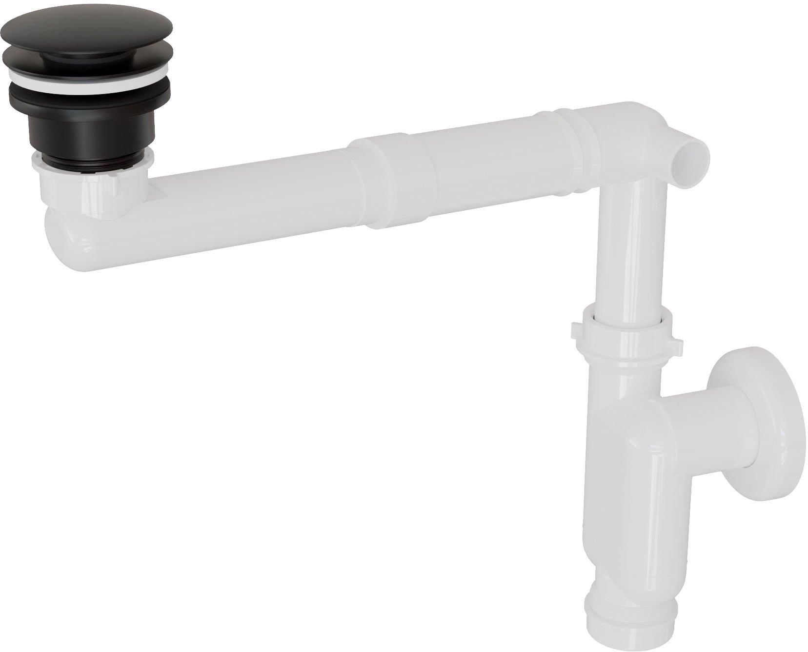 Syfon umywalkowy Jano regulowany oszczędzający miejsce z korkiem uniwersalnym klik klak czarny s2212 to model w białym kolorze, którego możliwość regulacji długości i wysokości pozwala dostosować syfon do konkretnej instalacji. Wykonany z tworzywa sztucznego odpornego na wysokie temperatury oraz rdzę, występuje w komplecie z korkiem klik klak w czarnym kolorze. Forma okrągłego grzybka służy wygodzie użytkowania. Wysokiej klasy model charakteryzuje się specjalną konstrukcją, która umożliwia montaż w niewielkich przestrzeniach pod umywalką, pozostawiając więcej miejsca do zagospodarowania. Powyższy wariant butelkowy posiada standardową średnicę przyłącza gwintowanego 1 1/4". Produkt marki Jano wyróżnia się szczególną skutecznością w zapobieganiu przenikania nieprzyjemnych zapachów z kanalizacji. Uniwersalny syfon umywalkowy Jano dedykowany jest umywalkom nablatowym, wiszącym oraz wpuszczanym. Produkt dostępny jest także z korkiem w innych wariantach kolorystycznych.