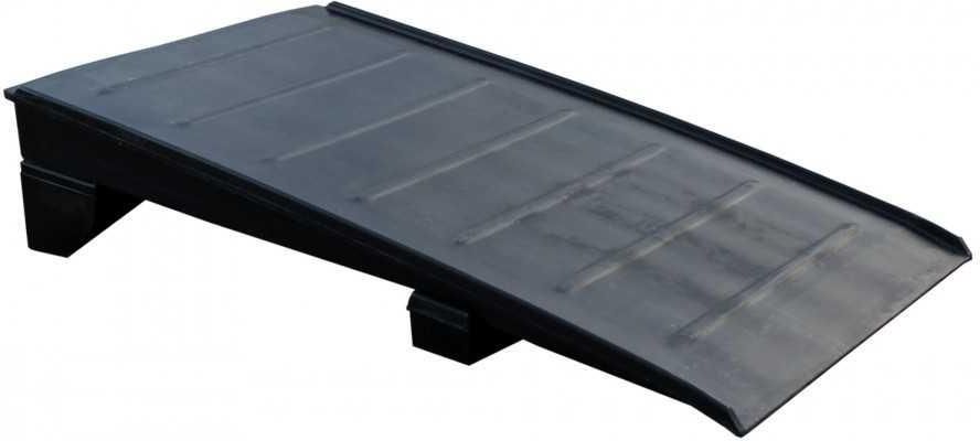 Rampa najazdowa wykonana w 100% z polietylenu o doskonałej odporności mechanicznej i chemicznej, bardzo wytrzymała. Przeznaczona do użytku z ręcznymi wózkami transportowymi. Zapewnia ergonomiczną metodę załadunku i rozładunku ciężkich przedmiotów z platform wychwytowych firmy ROMOLD. Idealnie pasuje do modeli: platformy wychwytowej pod 4 beczki o standardowej pojemności (BP4) wanny wychwytowej pod 2 beczki z roletą (BP2HC) Posiada boczne szyny ograniczające ryzyko niekontrolowanego zsunięcia się wózka podczas zjazdu lub wjazdu. Jest łatwa w podnoszeniu, przenoszeniu i obsłudze. Wymiary: długość: 174 cm; szerokość: 100 cm; wysokość: 37 cm. Właściwości: bardzo wytrzymała – nośność do 1000 kg; posiada szyny boczne; nie ulega korozji; wysoka odporność mechaniczna.
