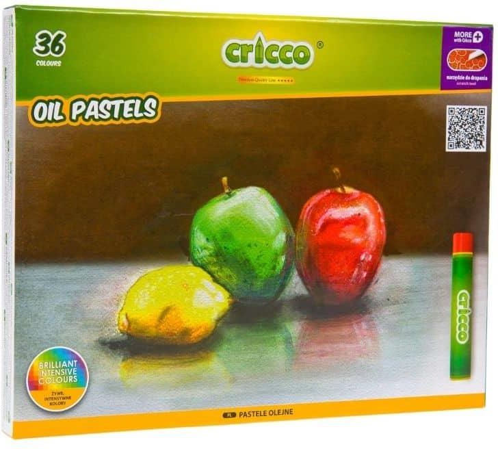 Pastele olejne CRICCO 24 kolory kredki pastele olejne Pastele olejne najwyższej jakości intensywnie nasączone barwnikami. W każdym pudełku narzędzie do drapania rysunku Bardzo dobre mieszanie kolorów dzięki późno osiągalnemu efektowi woskowania. Każda pastela w ochronnej papierowej obwolucie Do wyboru 2 designy opakowań. Marka Cricco CRICCO to europejska marka wysokiej jakości kredek ołówkowych i artykułów plastycznych dla młodych artystów. Nasze produkty powstają na bazie wieloletnich doświadczeń z zakresu edukacji szkolno – plastycznej. Tworzymy dla dzieci z wiedzą o ich potrzebach i upodobaniach. Dbamy o najmniejsze szczegóły dotyczące naszych wyrobów, aby sprostać oczekiwaniom naszych młodych odbiorców, których traktujemy bardzo poważnie. Przywiązujemy ogromną wagę do bezpieczeństwa użytkowania naszych produktów. Surowce użyte do produkcji CRICCO objęte są laboratoryjną kontrolą jakości. Są nietoksyczne i posiadają europejski certyfikat bezpieczeństwa CE. Walory jakościowe widoczne są już na półce sklepowej dzięki specjalnej konstrukcji naszych opakowań, które poprzez unikalne okienka pozwalają ocenić produkt – zobaczyć go z bliska, a nawet dotknąć. Grupy produktowe MARKI CRICCO: kredki ołówkowe ołówki farby i pędzelki pisaki pastele masy piankowe kreda kleje wymazywacze Zrób to sam: wyszywanki, zdrapywanki, termobreloczki, termozawieszki, bibułkowe wyklejanki, zoorigami