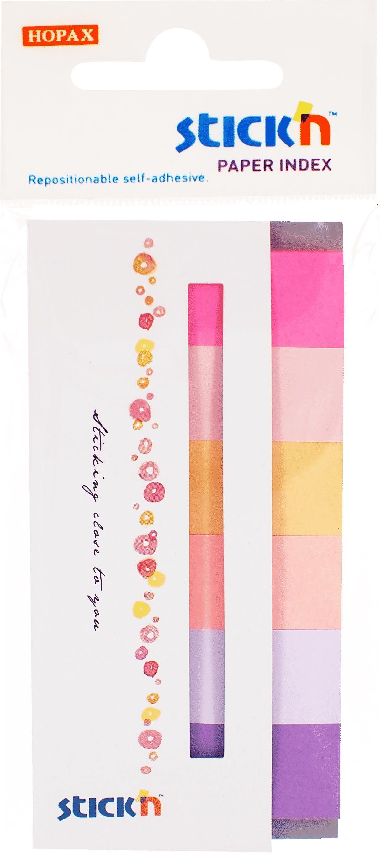 Zakładki indeksujące papierowe, 6 bloczków 45 × 15 mm po 30 karteczek każdy, w sumie 180 zakładek w 6 różnych kolorach.Zakładki indeksujące papierowe, 6 bloczków 45 × 15 mm po 30 karteczek każdy, w sumie 180 zakładek w 6 różnych kolorach. Umożliwiają łatwe zaznaczanie i szybkie odnajdywanie ważnych informacji. Można je wielokrotnie odrywać i przyklejać w innych miejscach.