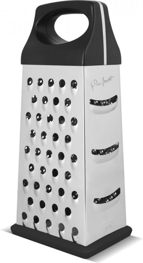 RAPE LT7050 TARKA MATERIAŁ  | stal nierdzewna / tworzywo sztuczne WYMIARY  | 26 cm KOLOR  | stal nierdzewna / czarna Czterostronna nierdzewna tarka do ręcznego tarcia serów, warzyw, owoców itd. Cztery rodzaje powierzchni trących gwarantują wystarczający wybór grubości produktów. Plastikowy mocny uchwyt. Antypoślizgowa guma silikonowa. Przed pierwszym użyciem i po każdym użyciu umyj ciepłą wodą z płynem do mycia naczyń, opłucz i osusz. Produkt należy przechowywać poza zasięgiem dzieci.