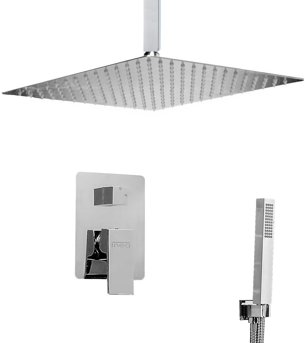Zestaw podtynkowy deszczownica 30 cm długie ramię SKU: ZP024824 Zestaw podtynkowy deszczownica 30 cm długie ramię SKU: ZP024824 Producent: SANNIT Typ: podtynkowy Kolor: srebrny / chrom Kształt: kwadratowy Ilość funkcji: 2 Rodzaj głowicy: bez termostatu Deszczownica: DN0302 (30 cm, stal nierdzewna, ultra slim) Słuchawka: AL0032 (tworzywo) Ramię: RD0112 (35 cm, sufitowe) Wejście / wyjście: 1/2 cala Mieszacz podtynkowy MP10222 Głównym elementem zestawu jest 2-funkcyjna bateria podtynkowa marki SANNIT. Korpus mieszacza to masywny odlew mosiężny. Pokrętła wykonane są ze stali nierdzewnej pokrytej chromem. Rozeta wykonana jest ze stali nierdzewnej. Górne pokrętło to przełącznik funkcji, za pomocą którego wybieramy deszczownicę lub słuchawkę prysznicową. Dolne pokrętło służy do regulacji ciśnienia wody oraz jej temperatury. Ultra cienka deszczownica ze stali nierdzewnej DN0302 Kwadratowa deszczownica o wymiarach 30 x 30 cm wykonana jest ze stali nierdzewnej o grubości 1mm a sama krawędź to jedynie 2mm grubości. Dysze wyposażone zostały w silikonowe zakończenia z systemem Anti-Calc zapobiegające osadzaniu się kamienia z twardej wody, system ten gwarantuje drożność dysz nawet po długim okresie użytkowania. Regulowane przyłącze (1/2 cala) deszczownicy pozwala na łatwe i szybkie ustawienie dowolnego kąta natrysku. Sufitowe ramię montażowe RD0112 Ramię deszczownicy w tym zestawie przeznaczone jest do montażu sufitowego. Wykonane jest z mosiądzu pokrytego chromem. Zarówno wejście jak i wyjście zakończone jest gwintem zewnętrznym o rozmiarze 1/2 cala i pasuje do większości deszczownic dostępnych na rynku. Do ramienia dołączona jest również rozeta maskująca. Charakterystyka: Długość ramienia: 36 cm Szerokość rozety: 63 mm Wejście / wyjście: 1/2 cala Słuchawka prysznicowa i wąż W zestawie znajdują się również wąż prysznicowy oraz słuchawka a także przyłącze kątowe wykonane z mosiądzu pokrytego chromem. Przyłącze posiada rozetę maskującą o wymiarach 40 x 40 mm a gwinty na wejście i wyjście wody mają standardowy rozmiar 1/2 cala. Kwadratowa słuchawka prysznicowa wykonana jest z tworzywa i dopasowana designem do całości zestawu. Posiada także silikonowe dysze Anti-Calc, które umożliwiają łatwe wykruszanie osadów co wpływa na jej żywotność oraz wygodę użytkowania. Wąż dołączony do zestawu ma długość 150 cm.