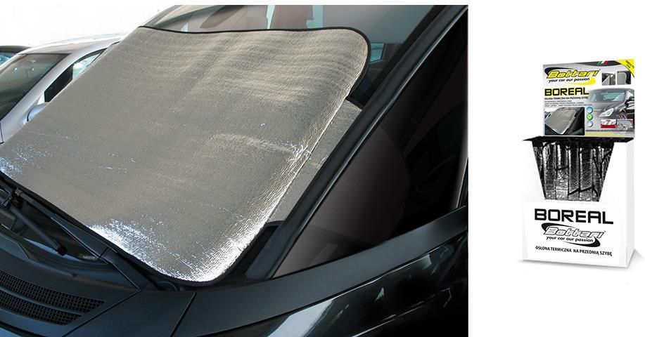 BOTTARI Osłona termiczna letnio/zimowa BT18835 Osłona termicznana przednia szybę auta o wymiarach 150 x 71 cm. Przeznaczona do stosowania zarówno latem jak i również zimą. Doskonała zarówno zimą jako ochrona przed śniegiem, lodem i szronem, oraz latem – jako osłona przeciwsłoneczna zapobiegająca nadmiernemu nagrzania się wnętrza pojazdu. Niezwykle wygodna i łatwa w użyciu. Wystarczy tylko, ze położysz ją na przedniej szybie auta i zamkniesz jej boczne końce drzwiami.